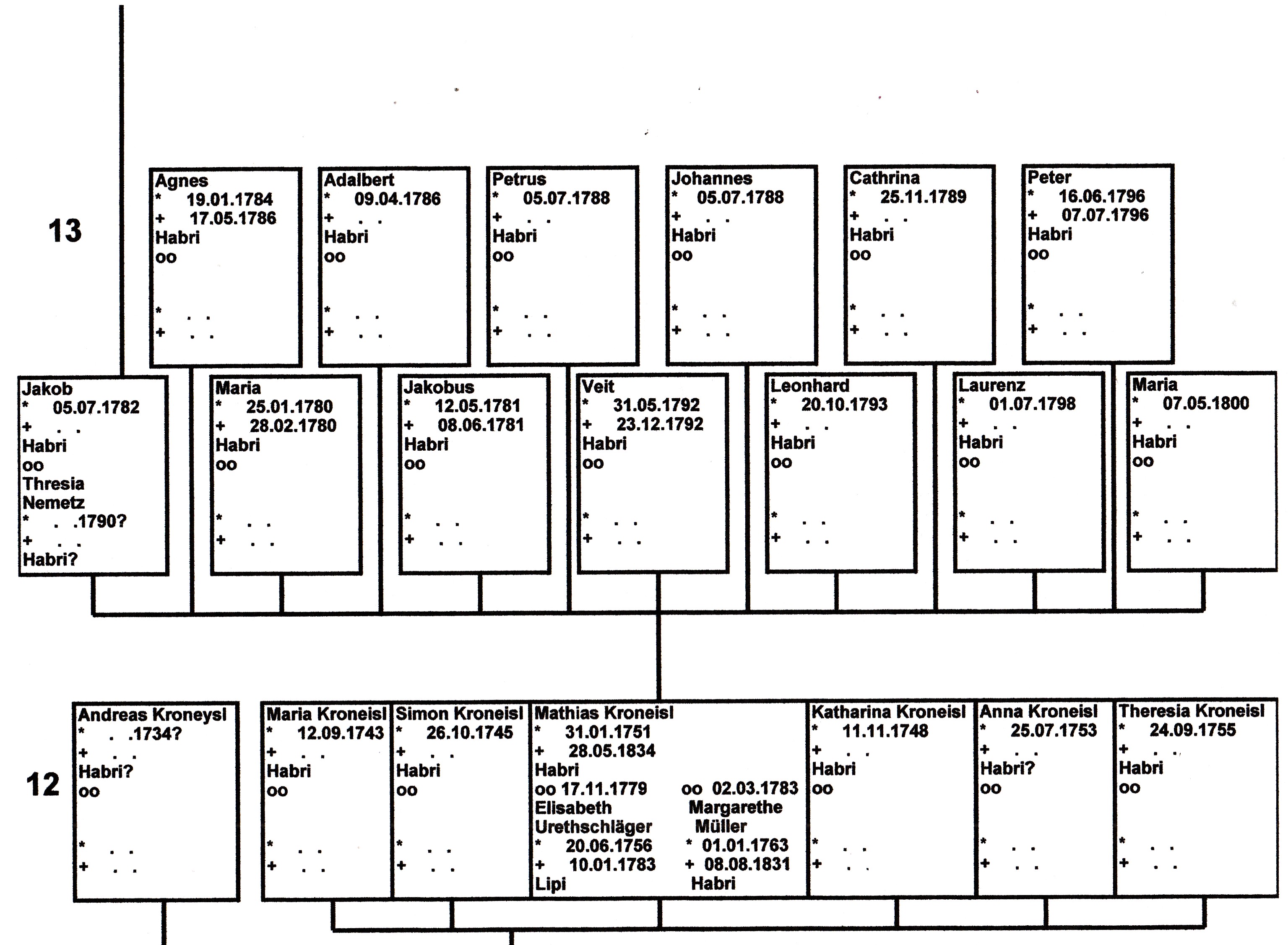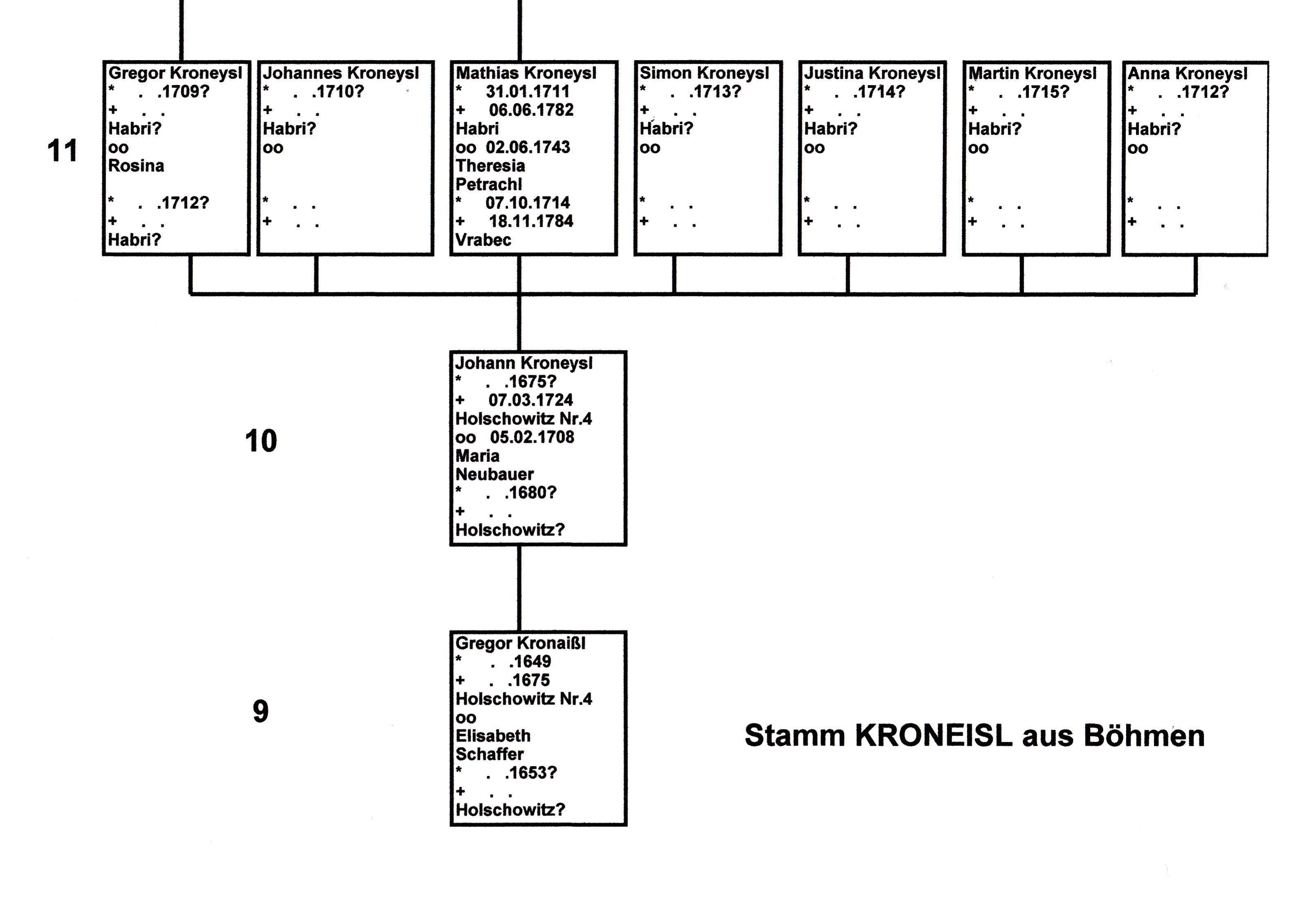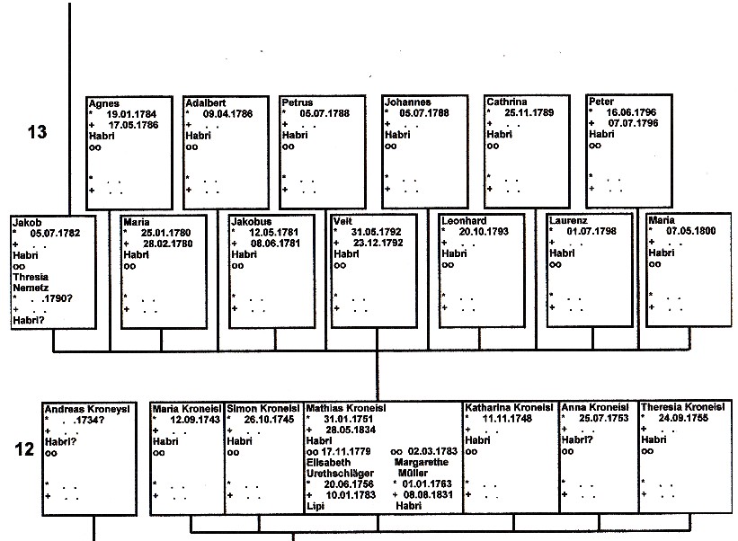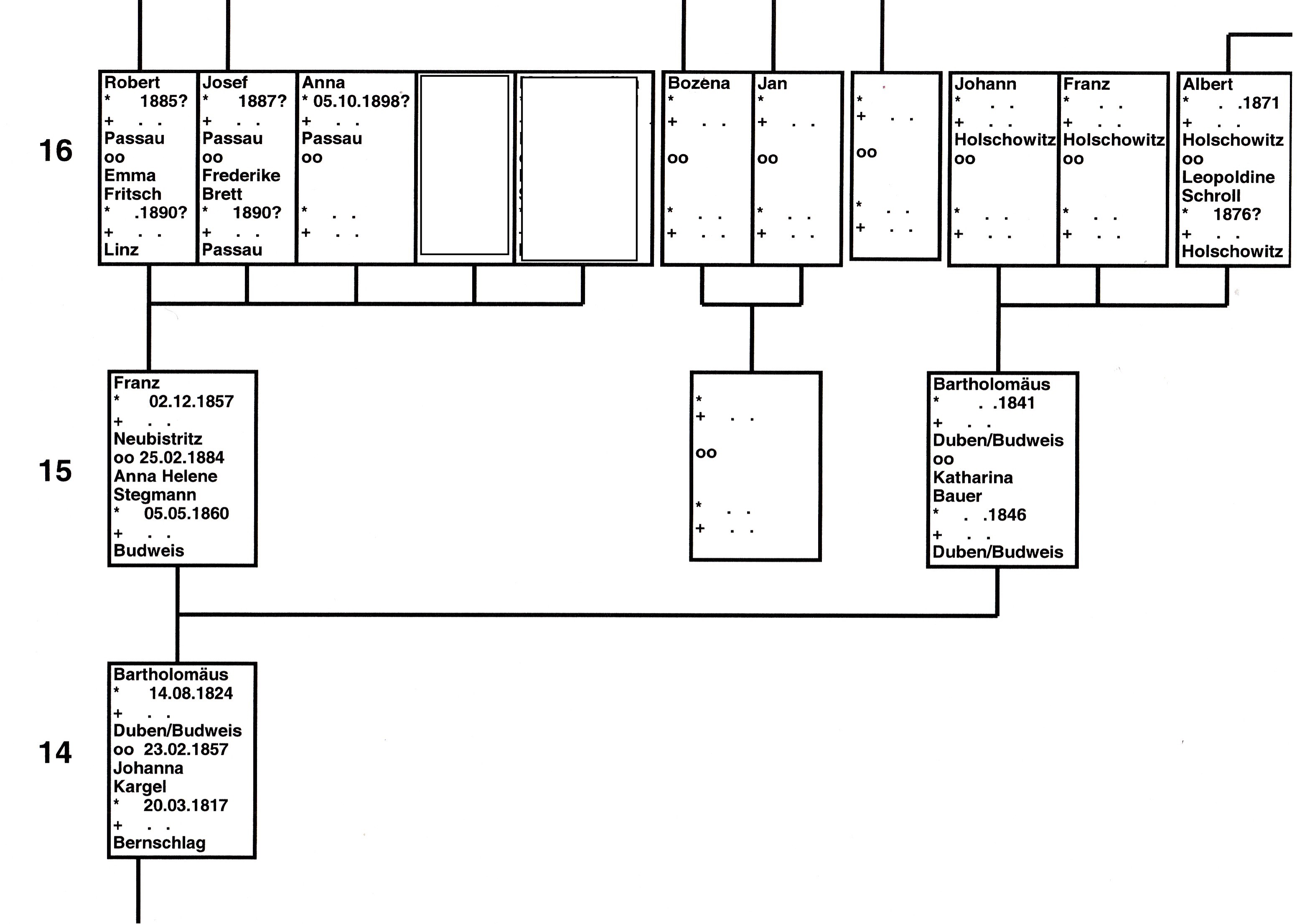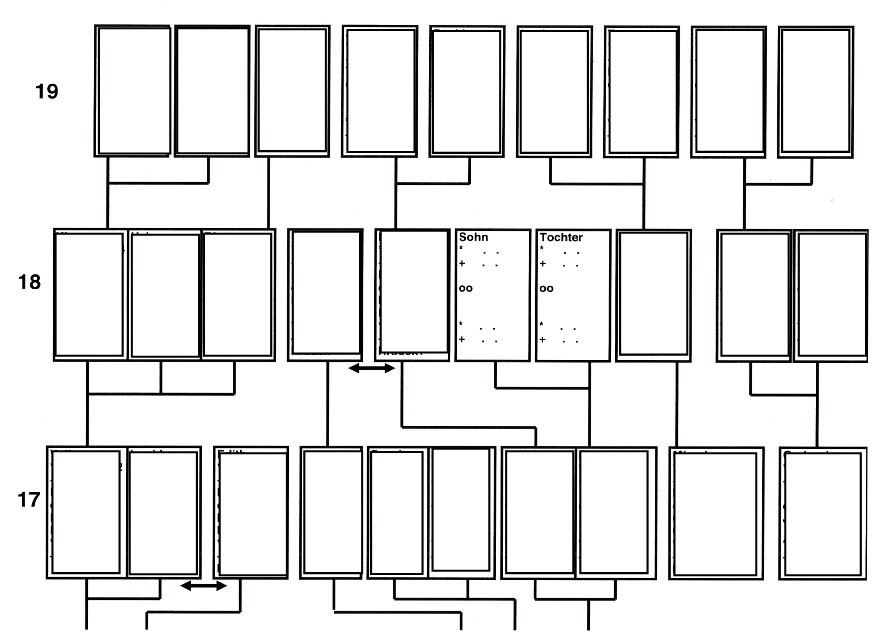 Die Zahlen im Stammbaum sind Generationsnummern,