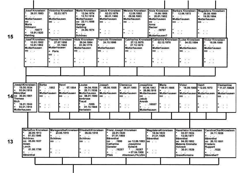 Die Zahlen im Stammbaum sind Generationsnummern,