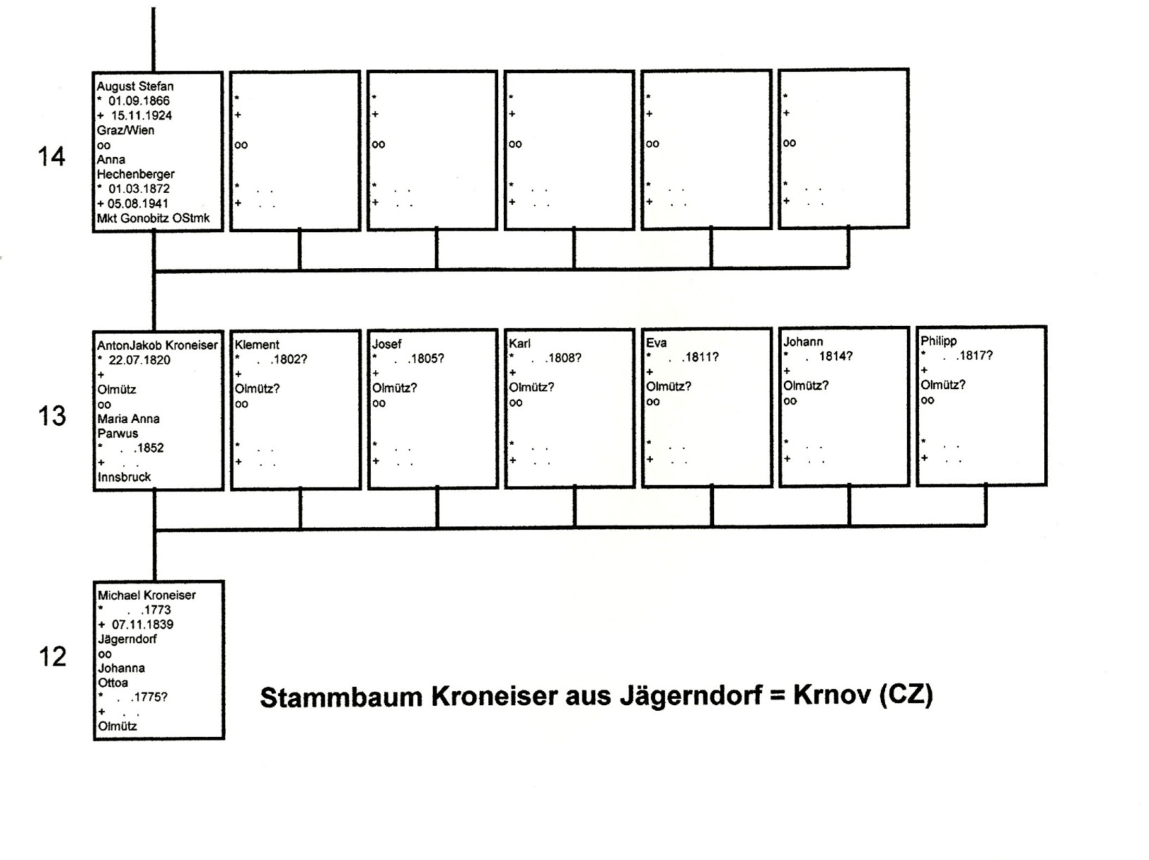 Stammbaum der KRONEISER aus Österreich/Tschechien